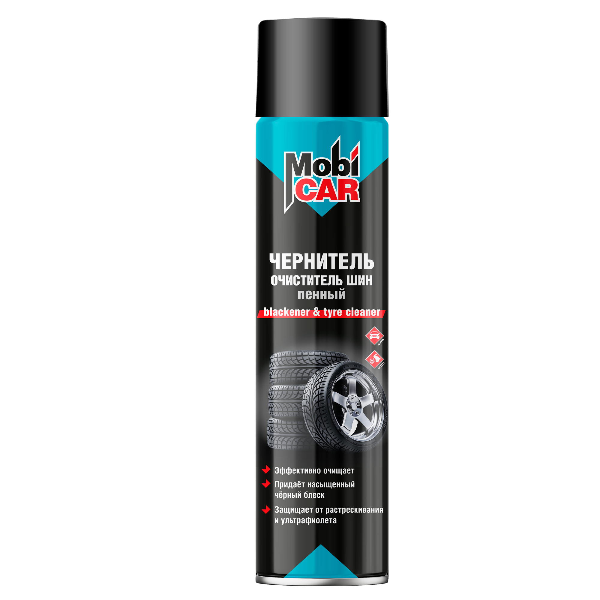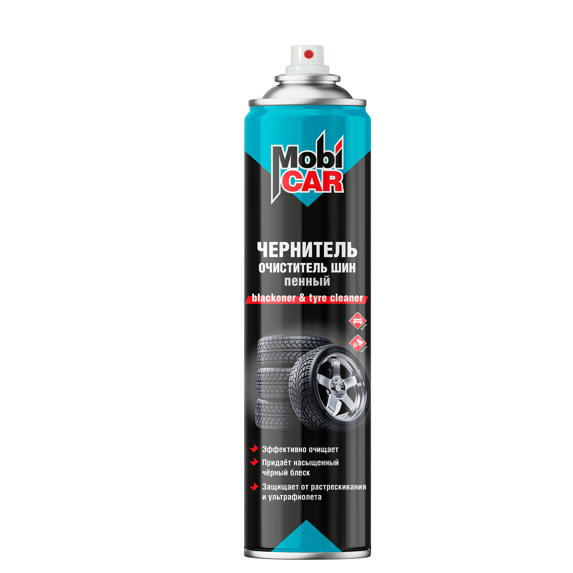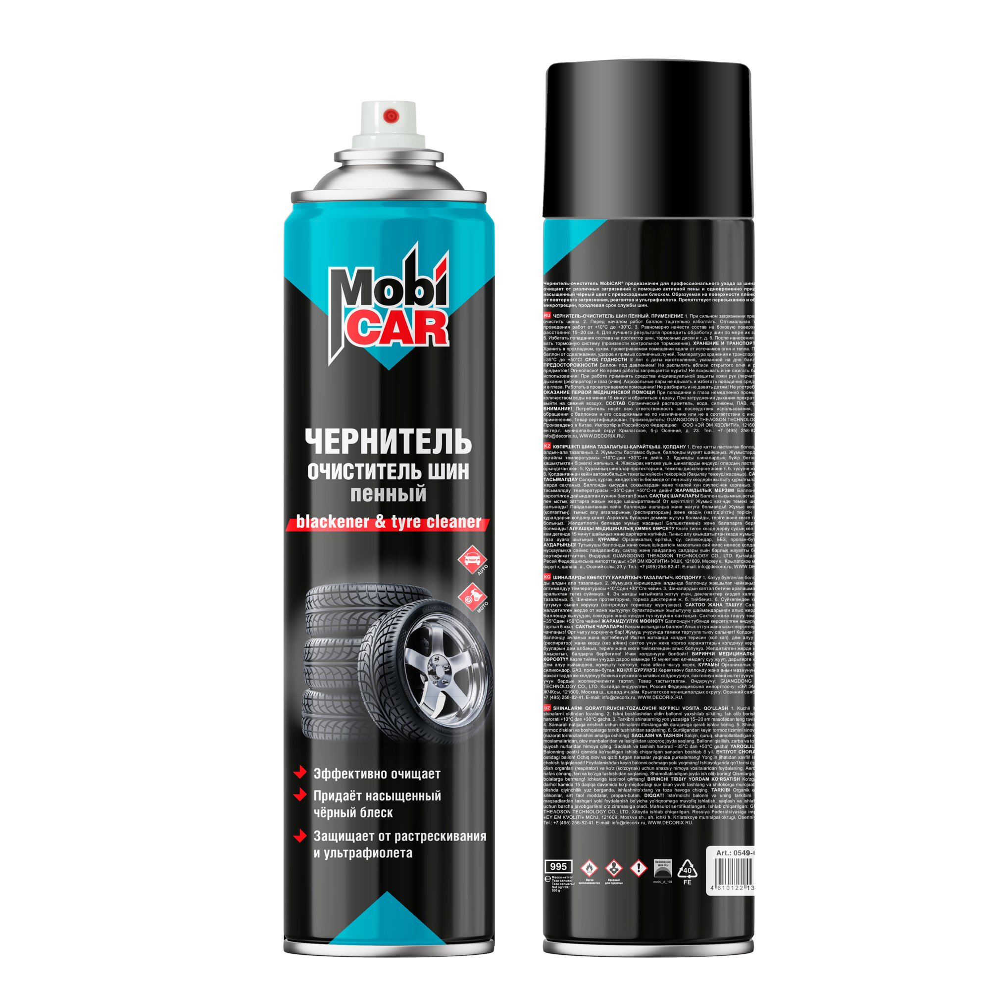 Чернитель-очиститель MobiCAR® предназначен для профессионального ухода за шинами. Состав очищает от различных загрязнений с помощью активной пены и одновременно придаёт резине насыщенный чёрный цвет с превосходным блеском. Образуемая на поверхности плёнка защищает от повторного загрязнения, реагентов и ультрафиолета. Препятствует пересыханию и образованию микротрещин, продлевая срок службы шин.