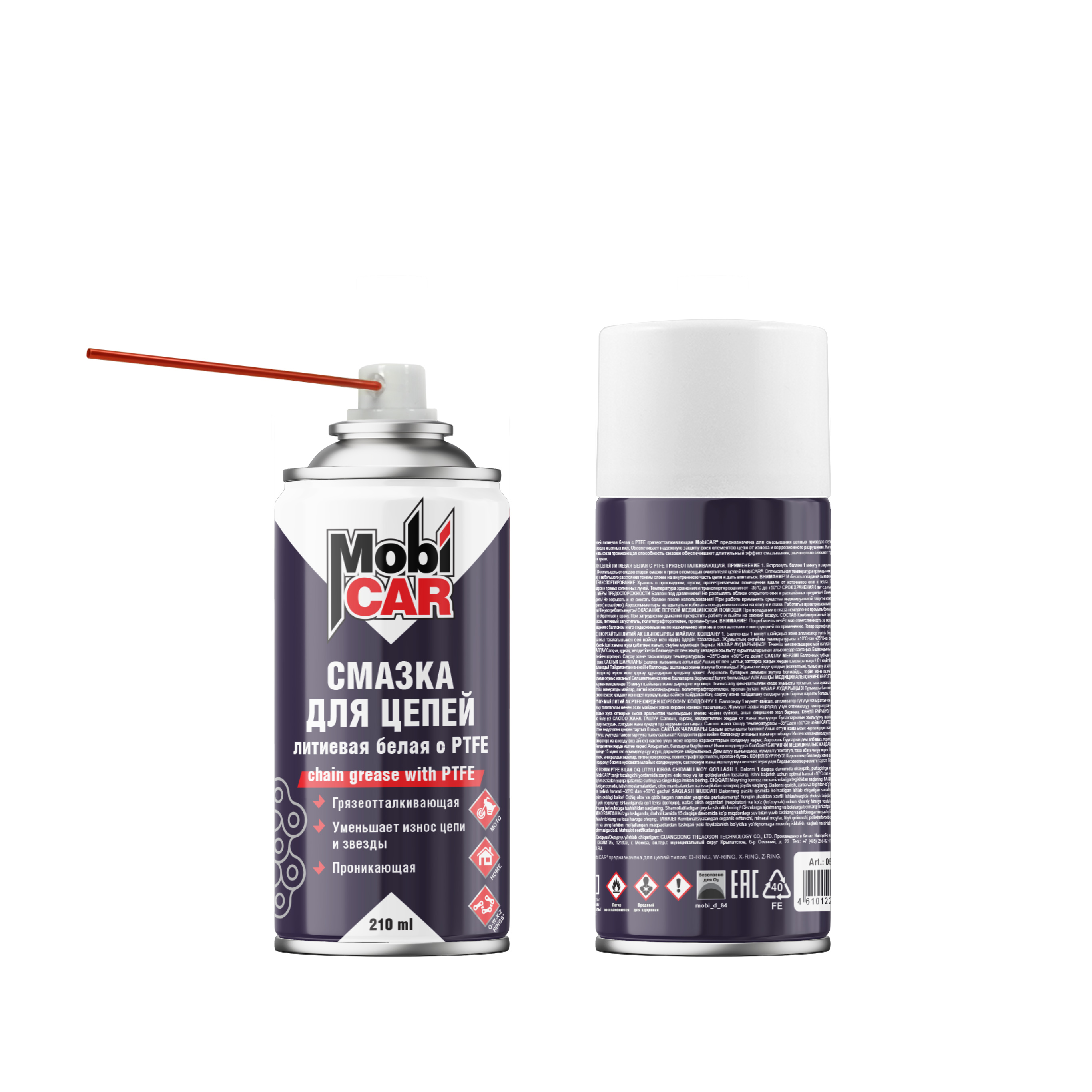 Смазка для цепей литиевая белая с PTFE грязеотталкивающая MobiCAR® предназначена для смазывания цепных приводов велосипедов, мотоциклов, мопедов, снегоходов и цепных пил. Обеспечивает надёжную защиту всех элементов цепи от износа и коррозионного разрушения. Наличие антифрикционной добавки PTFE и высокая проникающая способность смазки обеспечивают длительный эффект смазывания, значительно снижают трение и защищают цепи от воды, песка и грязи. Подходит для цепей с сальниками типов: O-RING, W-RING, X-RING, Z-RING.