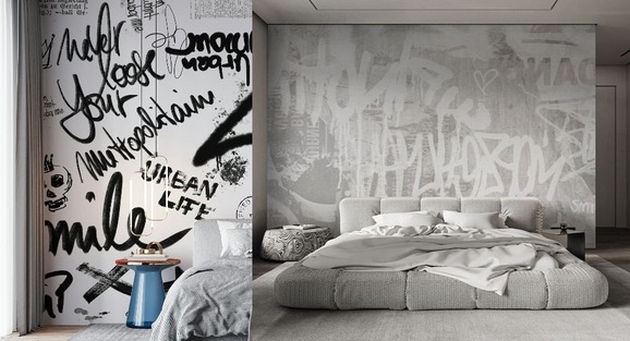 Граффити уже давно вышло за пределы улиц и стало частью интерьерного дизайна. Яркая надпись, мотивирующая цитата или арт-рисунок сделают комнату уникальной.
