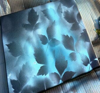 Создайте собственный арт. Распылите краску через трафарет или листья, ветки, перья. Получится оригинальное настенное украшение даже без художественного опыта.