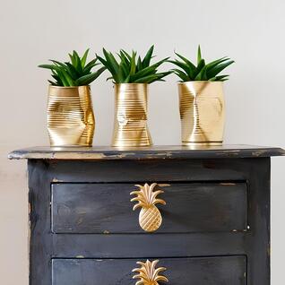 Обычные банки, бутылки и пластиковые горшки можно превратить в дизайнерские. Перед покраской очистите поверхность и добавьте трафарет или малярную ленту — получится оригинальный рисунок.