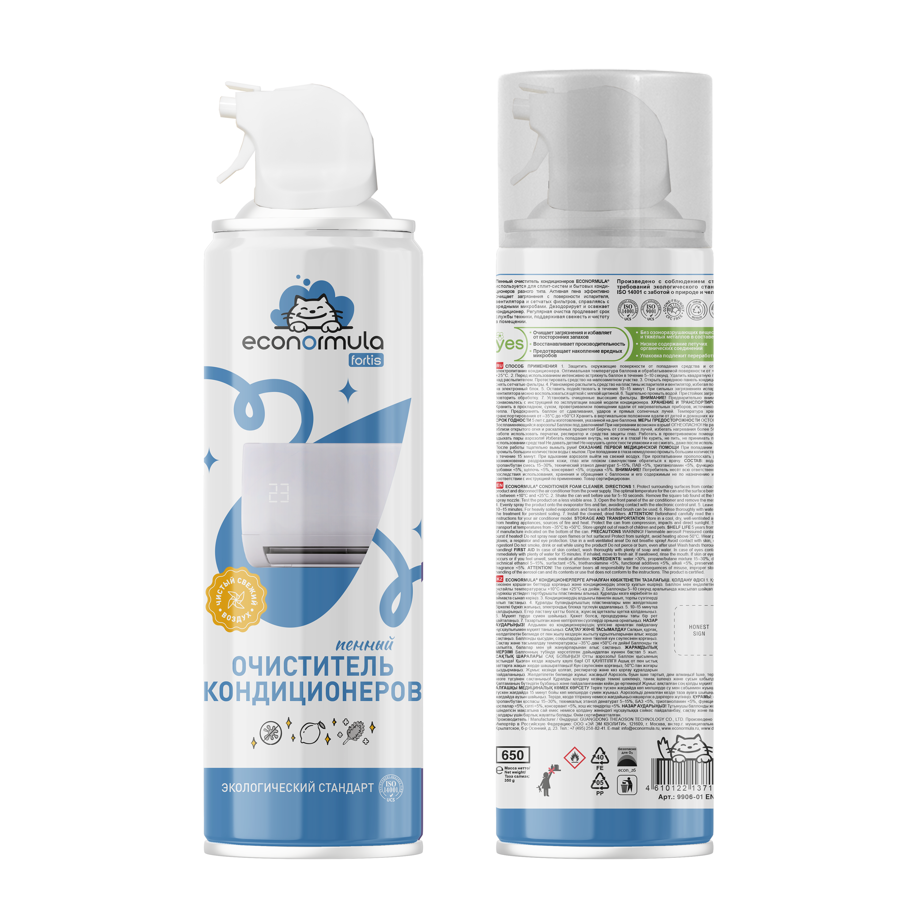 ПЕННЫЙ ОЧИСТИТЕЛЬ КОНДИЦИОНЕРОВ ECONORMULA® используется для сплит-систем и бытовых кондиционеров разного типа. Активная пена эффективно очищает загрязнения с поверхности испарителя, вентилятора и сетчатых фильтров, справляясь с вредными микробами. Дезодорирует и освежает кондиционер. Регулярная очистка продлевает срок службы техники, поддерживая свежесть и чистоту в помещении. Произведено с соблюдением строгих требований экологического стандарта ISO 14001 с заботой о природе и человеке.