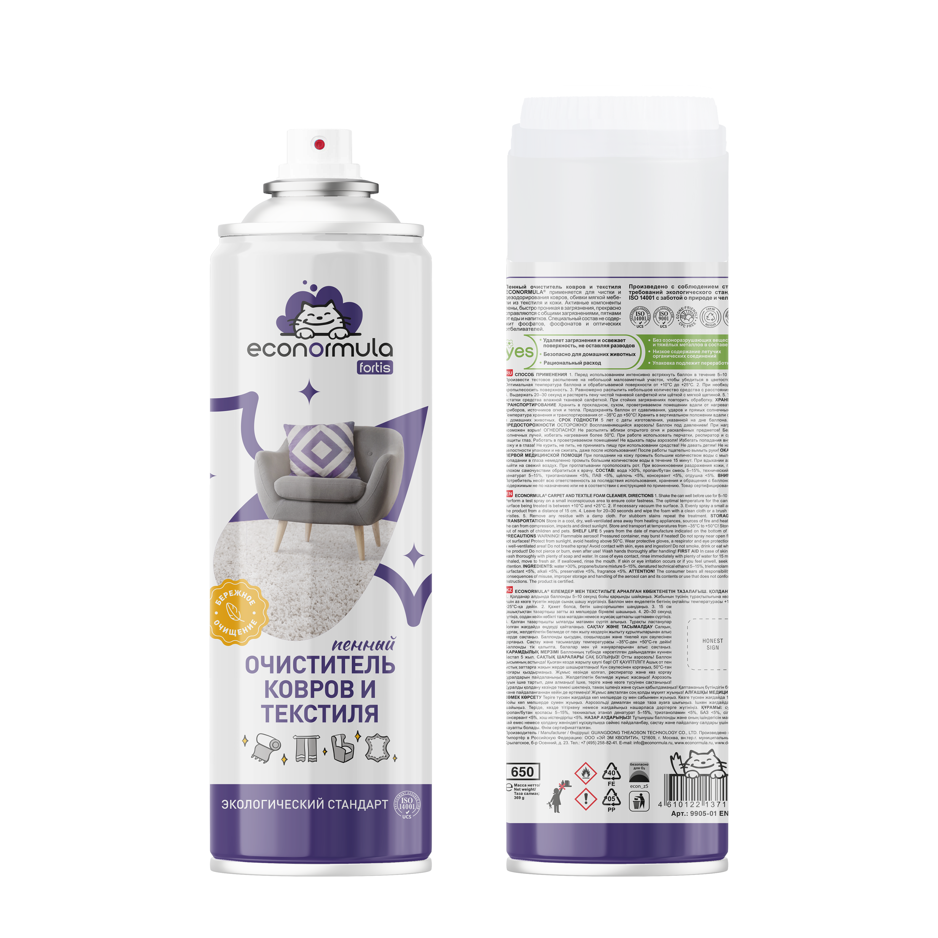 ПЕННЫЙ ОЧИСТИТЕЛЬ КОВРОВ И ТЕКСТИЛЯ ECONORMULA® применяется для чистки и дезодорирования ковров, обивки мягкой мебели из текстиля и кожи. Активные компоненты пены, быстро проникая в загрязнения, прекрасно справляются с общими загрязнениями, пятнами от еды и напитков. Специальный состав не содержит фосфатов, фосфонатов и оптических отбеливателей. Произведено с соблюдением строгих требований экологического стандарта ISO 14001 с заботой о природе и человеке.