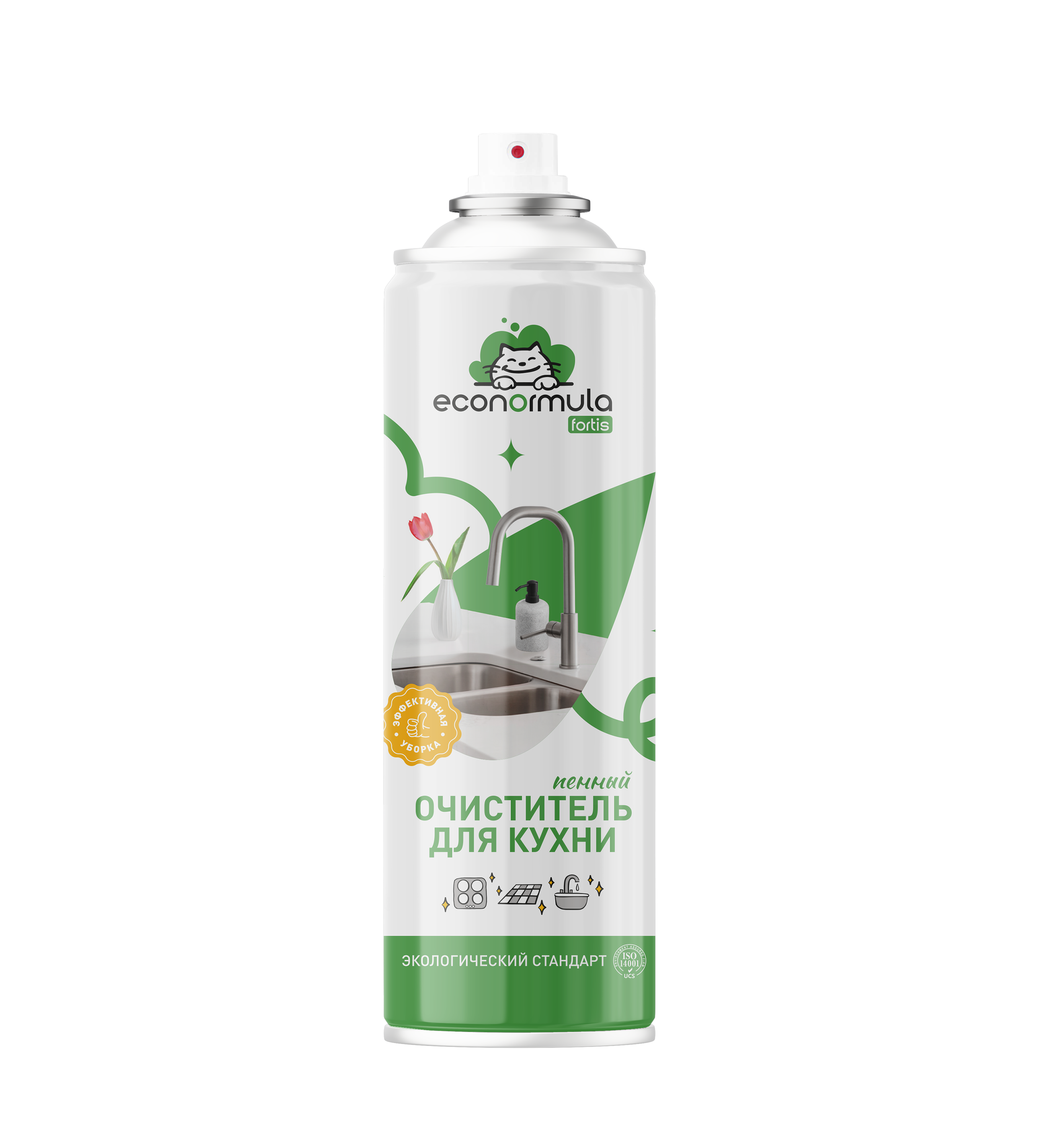 ПЕННЫЙ ОЧИСТИТЕЛЬ КУХОННЫХ ПОВЕРХНОСТЕЙ ECONORMULA® применяется для очистки керамической плитки, кухонных вытяжек, эмалированных поверхностей, газовых и электрических плит от загрязнений, жира и масляных пятен. Активные компоненты вместе с растительным цитрусовым экстрактом глубоко проникают в жировые загрязнения и растворяют их. Густая пена обеспечивает бережное очищение и экономический расход средства. Произведено с соблюдением строгих требований экологического стандарта ІЅО 14001 с заботой о природе и человеке.