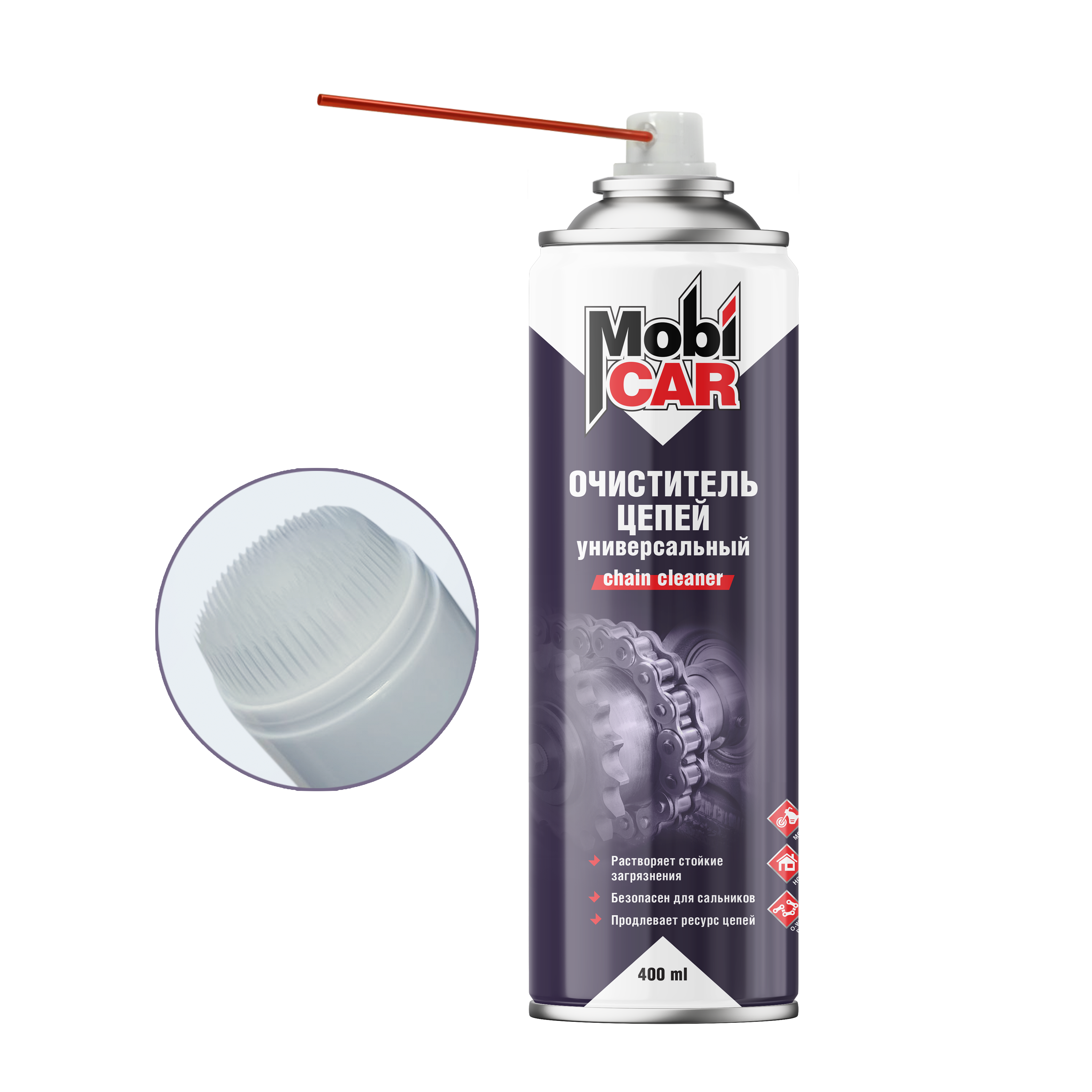 Очиститель цепей универсальный MobiCAR® предназначен для быстрого и эффективного растворения стойких загрязнений, очистки и обезжиривания от старых смазок, масел и тормозных жидкостей. Полностью испаряется, не повреждая уплотнительные кольца. Применяется для очистки цепей и дисков звёздочек мотоциклов, велосипедов, мопедов, мотороллеров, снегоходов и другой техники с цепным приводом. Подходит для очистки и обезжиривания металлических деталей и инструментов. Состав совместим с устройствами для чистки цепи. Регулярное применение средства перед последующей смазкой значительно продлевает ресурс цепей и звёздочек. Безопасен для цепей с сальниками типов: O-RING, W-RING, X-RING, Z-RING.