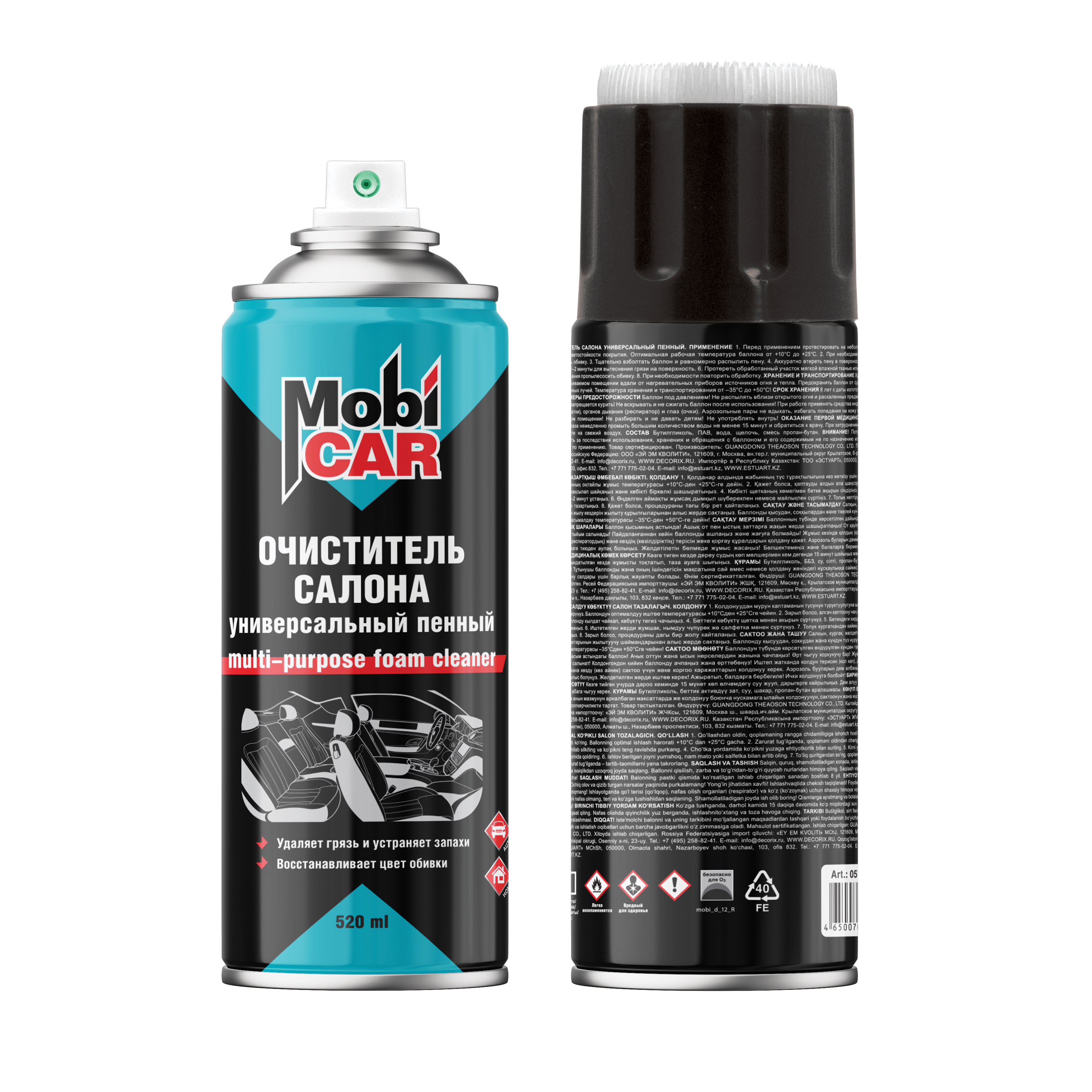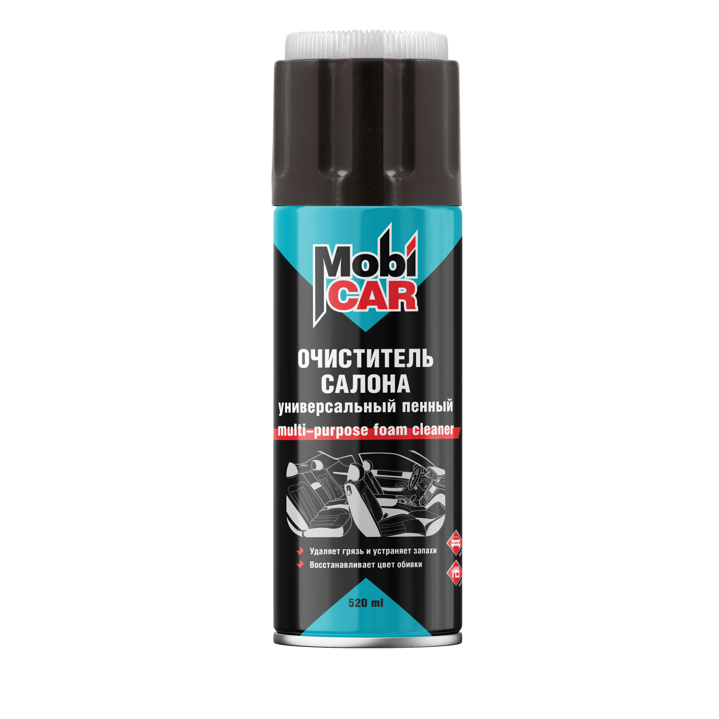 Профессиональный универсальный пенный очиститель салона MobiCAR® предназначен для лёгкого и быстрого удаления загрязнений различного происхождения с тканевой и велюровой обивки салона автомобиля.