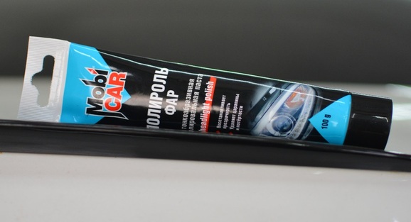 - Воспользоваться полиролью фар Mobicar.