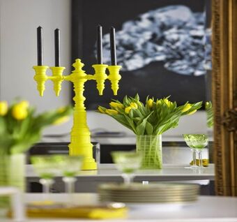 Банка, тарелка или старая игрушка — любая мелочь может стать подсвечником. Добавьте линии с помощью малярного скотча и выберите любимый оттенок краски.